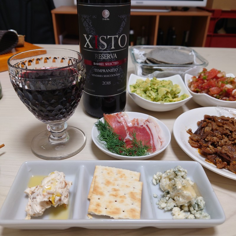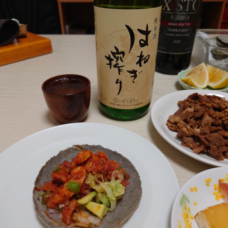 この日はタコスが食べたかったから、タコスをメインに、田邉さんおすすめペアリングのハモンセラーノと、最近ハマっている燻製料理を作ったよ🥰