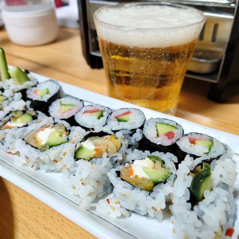 帰ってきた彼氏と共に、ビールを飲みながら海苔巻きで〆た。