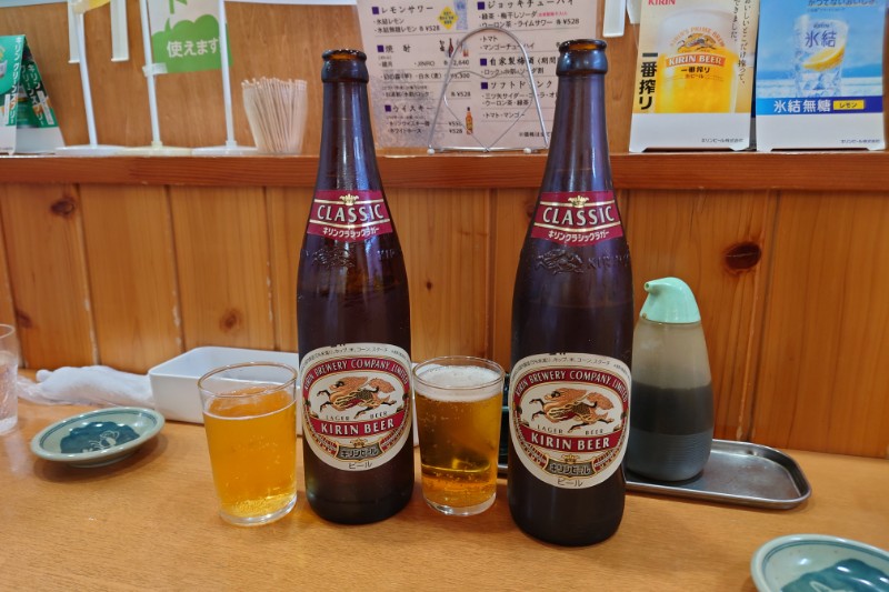 注文は、水餃子と焼き餃子と瓶ビール🍺