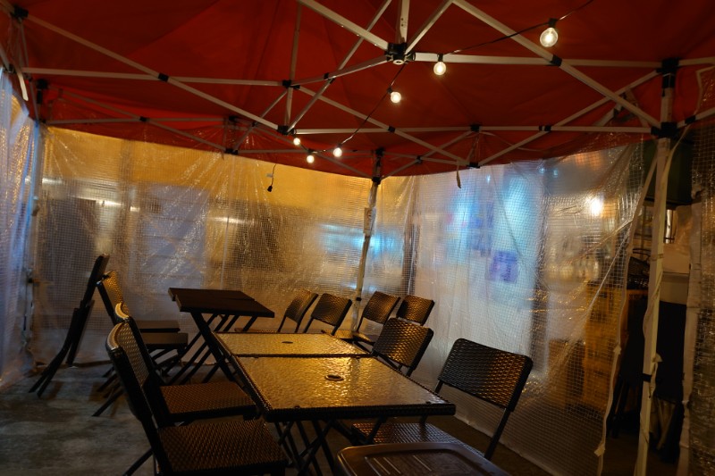 今回は店外にあるテントで食べることにしたよ~