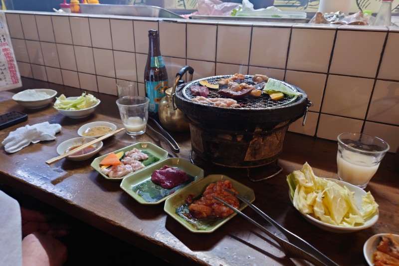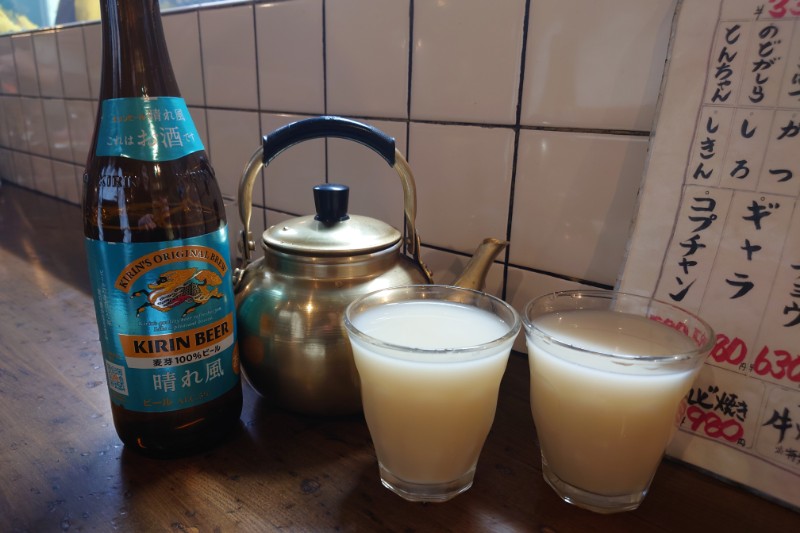 そんな煙いホルモン横丁で注文したのはやかんマッコリと瓶ビール🍺