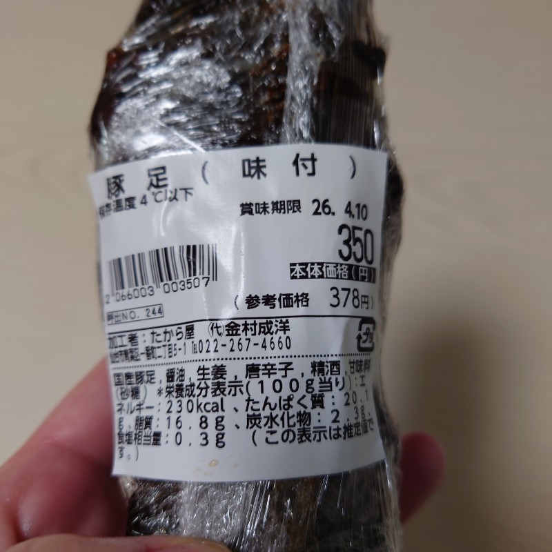目の前にある豚足は、青葉通一番町駅近くにある立ち飲み屋「たから屋」さんの!