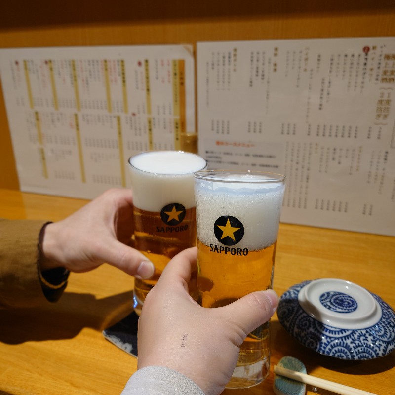 婚姻届を提出!区役所近く「寿司・天ぷら・極上麦酒 さかえ」の生ビールでカンパイ
