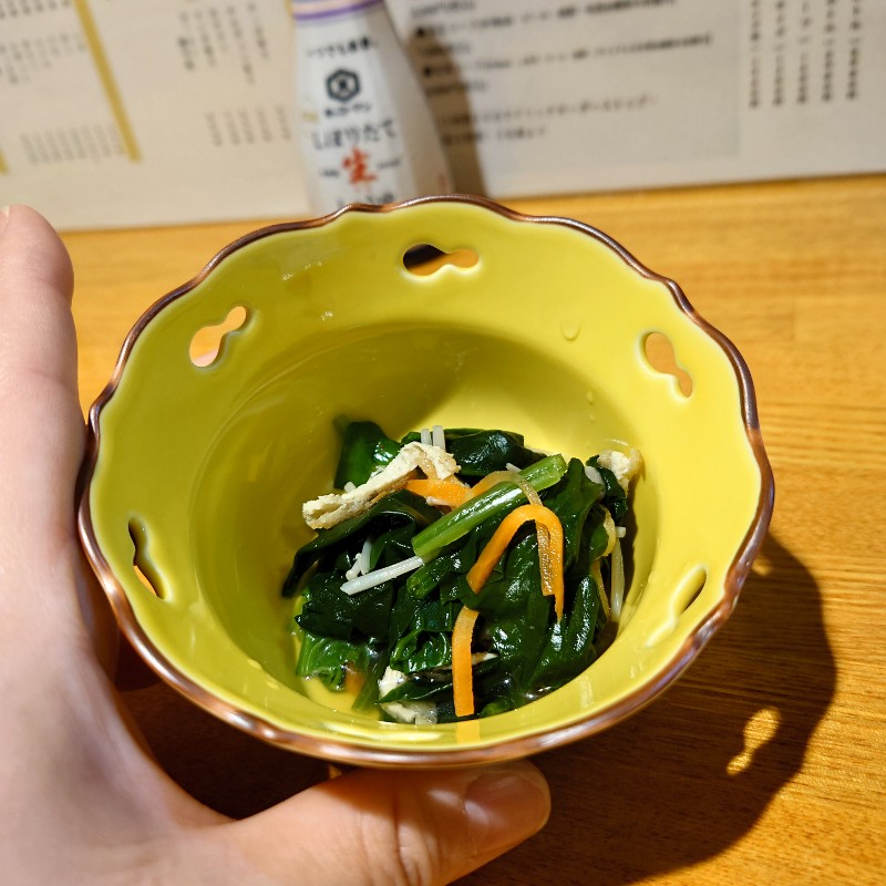普段お通しないんだけど、この日はほうれん草のお浸しをサービスしてくれたよ🥰