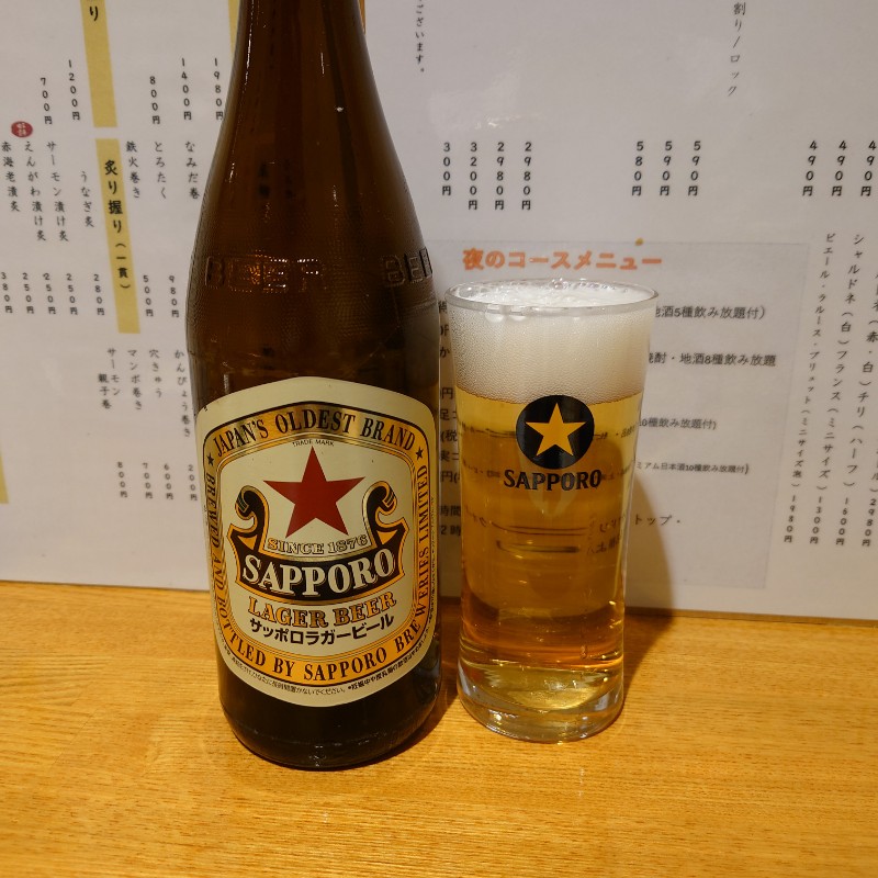 スイングカランで注ぐ生ビールは黒ラベルだけど、瓶ビールは赤星!